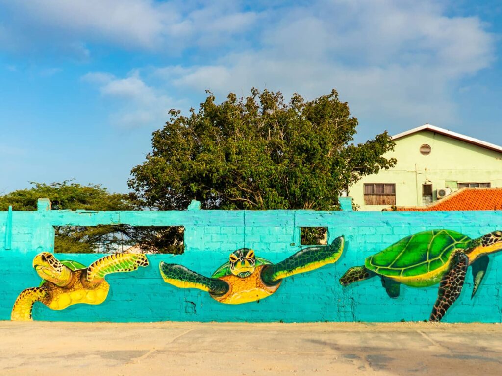 La trasformazione di questa località porta la firma di Tito Bolivar, curatore visionario e fondatore dell’Aruba Art Fair. Dal 2016 invita artisti da tutto il mondo – più di 80 finora – a dipingere muri, serrande e vecchi edifici. Con lui si può partecipare a un mural tour a piedi, ascoltando aneddoti e curiosità dietro a ogni opera, oltre al legame che crea con la comunità e le tecniche usate (c’è anche un prezioso mosaico realizzato con l’oro).