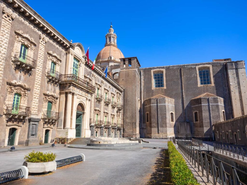 Maestoso e silenzioso, il Monastero dei Benedettini è uno dei complessi monastici più grandi d’Europa, oggi parte del patrimonio Unesco della città. Un luogo che racconta secoli di storia, tra architetture imponenti e stratificazioni sorprendenti e oggi sede di alcuni corsi di laurea dell’Università di Catania. L’edificio è annesso alla Chiesa di San Nicolò l’Arena che, ancora oggi, rappresenta la chiesa più grande della Sicilia. Fu costruito dai monaci benedettini provenienti da Nicolosi, costretti a trasferirsi a causa delle continue eruzioni dell’Etna (la più devastante fu quella del 1669 che dai monti Rossi raggiunse il mare).