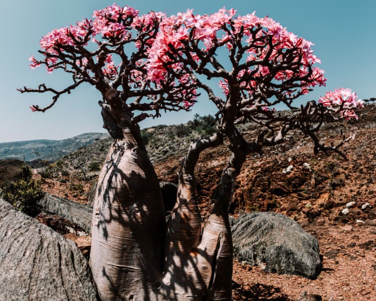 Una delle attrazioni principali è l’altopiano di Diksam dove crescono migliaia di alberi chiamati Bottle Tree, simbolo della straordinaria biodiversità dell’arcipelago, spesso soprannominato “Galápagos dell’Oceano Indiano”. Diksam offre anche panorami vertiginosi sui canyon sottostanti. Non sono meno famosi (e fotografati) i cosiddetti Dragon Blood Trees, tra le specie vegetali più singolari di tutta Socotra.