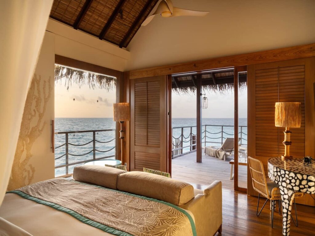 L’atollo, collocato lungo la rotta migratoria delle mante, è tra i più spettacolari dell’arcipelago: basta scendere in mare con la maschera per ritrovarsi circondati da anthias arancioni, pesci Napoleone e tartarughe Hawksbill. Moofushi è considerato uno dei migliori siti per immersioni al mondo, e ha fatto una scelta distintiva: assumere una biologa marina a tempo pieno. Il suo ruolo è spiegare, proteggere e, in un certo senso, tradurre la barriera corallina.