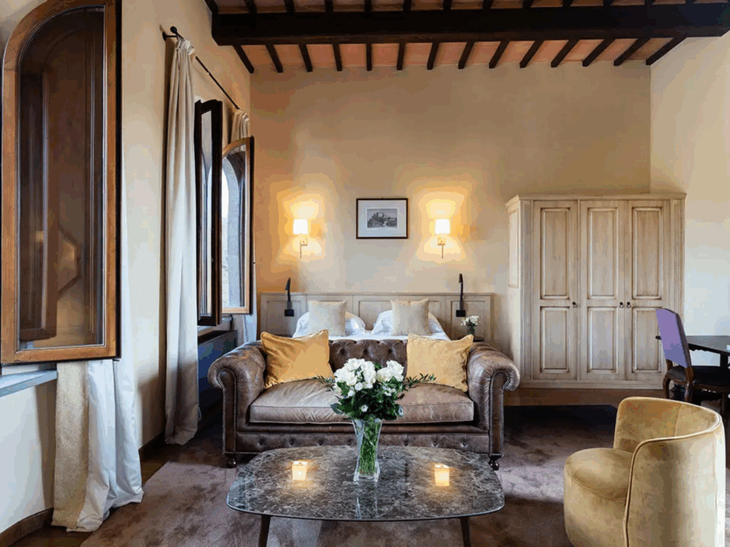Castel Monastero è un antico monastero medievale nel Chianti trasformato in un resort cinque stelle con camere e suite dal lusso raffinato e discreto; c’è anche una villa privata con tre camere da letto su due livelli, una spaziosa terrazza e un giardino con Jacuzzi. Al centro benessere Spa Monasterii – su una superficie di 1.500 metri quadrati – si può scegliere tra terapie dimagranti, detox e anti-età, massaggi e corsi di yoga. Non manca un ristorante stellato, Contrada, guidato dallo chef Davide Canella con piatti alla carta e menu degustazione.