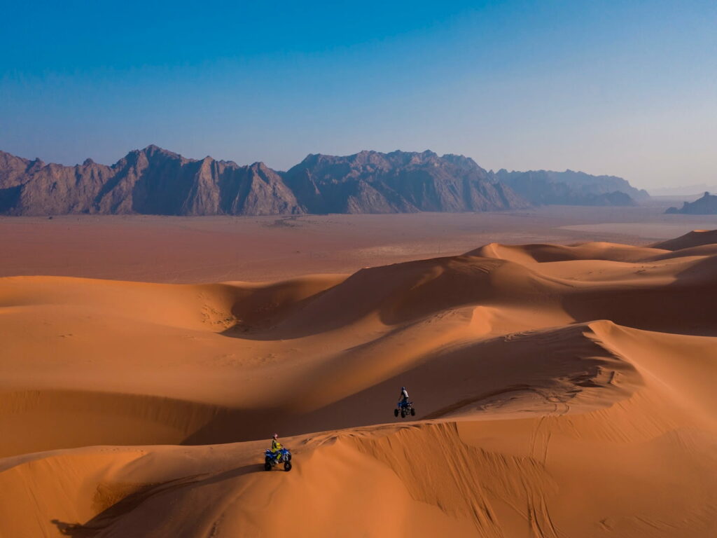 L’Arabia Saudita offre anche esperienze all’insegna dell’avventura e dell’adrenalina. Trekking e percorsi in bicicletta nelle oasi di Al Ahsa, escursioni in cammello tra le dune dell’Empty Quarter, voli panoramici sulle vallate di AlUla o crociere al tramonto lungo la costa occidentale permettono di scegliere il ritmo del proprio viaggio.