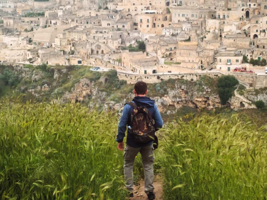 Matera è il punto d’arrivo, ma il vero viaggio inizia molto prima. Il Cammino Materano è una rete di sei vie che attraversano Puglia, Basilicata e Campania, seguendo antichi tratturi, strade medievali e sentieri rurali ancora poco battuti. Le direttrici principali partono da Bari, Trani, Brindisi, Termoli, Leuca e Paestum, offrendo molteplici modi di raggiungere la città dei Sassi. Tra i percorsi più strutturati ci sono la Via Peuceta, che collega Bari a Matera in sette tappe attraversando la Murgia, e la Via Ellenica, da Brindisi, divisa tra la Valle d’Itria e la Terra delle Gravine. Camminando si incontrano borghi come Alberobello, Ostuni e Ginosa, uliveti secolari e paesaggi carsici. Le altre vie, dalla Jonica alla Sveva, ampliano l’esperienza, seguendo le tracce di Federico II e delle antiche rotte di pellegrinaggio. Un cammino che unisce lentezza, identità locali e territori autentici.