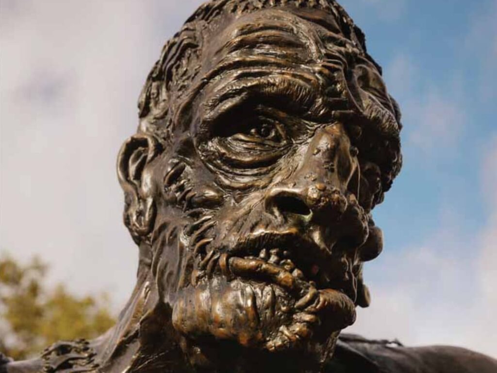 Era una giornata perfetta per andare a caccia di mostri: grigia e piovosa. Ho vagato per la città vecchia di Ginevra, solo sotto una pioggerellina fredda, finché non ho trovato quello che cercavo nel Parco di Plainpalais: una figura familiare, alta quasi 2,40 metri, a piedi nudi, con abiti strappati e lunghe suture sul viso, sul collo e sul torace, bloccata nel tempo. Nonostante la duratura eredità culturale di Frankenstein, il romanzo di Mary Shelley che ha ispirato innumerevoli adattamenti, questa statua in bronzo della creatura, eretta nel 2014 dal collettivo di artisti svizzeri KLAT, è l’unica testimonianza che sono riuscito a trovare della storia letteraria nata in quel luogo più di due secoli fa.