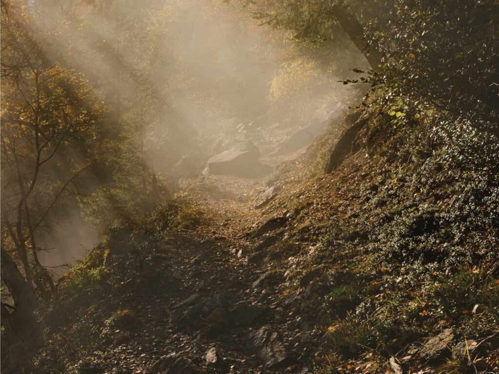 Ma verso la fine del sentiero, a soli 300 metri dalla mia destinazione, Montenvers, ho sbagliato strada. Mi sono ritrovato improvvisamente ad arrampicarmi su rocce bagnate, rischiando di cadere di lato e di precipitare lungo un ripido terrapieno roccioso. Sono riuscito a ritrovare l’equilibrio e lentamente sono tornato indietro, esausto e tremante, fino a quando finalmente sono arrivato a Montenvers, la porta di accesso alla Mer de Glace.