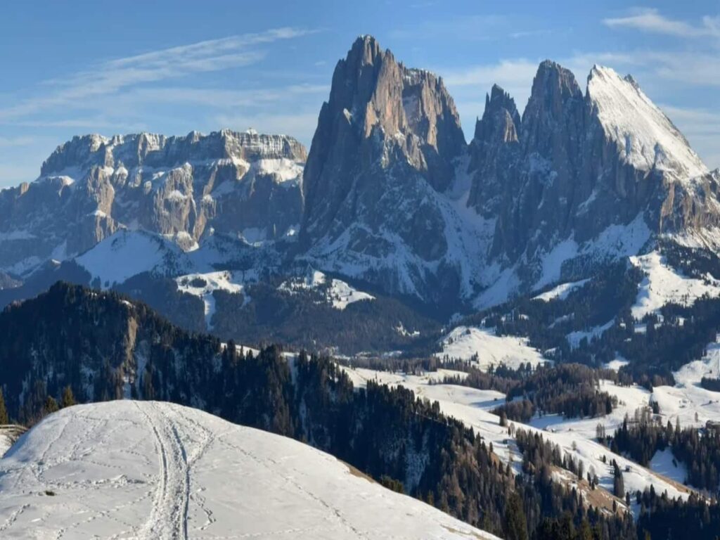 Perfetto per famiglie e camminatori di ogni livello, questo itinerario (12,6 chilometri) si snoda tra i prati dell’Alpe di Siusi, offrendo scorci sulle montagne circostanti come il Sassolungo. I sentieri ampi e ben battuti lo rendono una ciaspolata piacevole anche per una mezza giornata.
