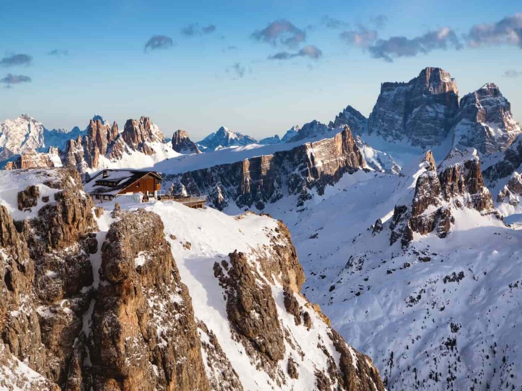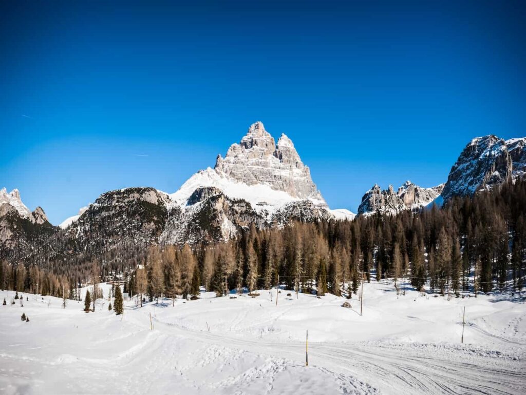 Questa ciaspolata da 11,6 chilometri si sviluppa sotto lo sguardo delle imponenti Tre Cime di Lavaredo, salendo gradualmente dal Lago d’Antorno fino al Rifugio Auronzo. I versanti montani, la valle e gli scorci verso le celebri torri rocciose regalano una vista costante e appagante. È un percorso ideale per chi vuole unire fatica moderata a panorami alpini spettacolari.
