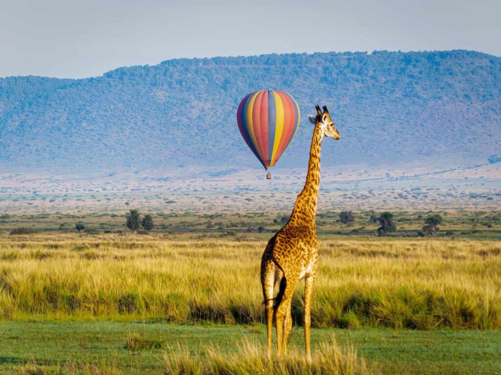 La savana che si perde all’orizzonte, punteggiata da branchi di gnu in migrazione, elefanti, giraffe e leoni: osservare la fauna africana dall’alto è una prospettiva che riesce a unire tutto il fascino del safari alla grazia di un volo silenzioso. Al termine di questa gita, in genere viene preparato un piccolo rinfresco con tanto di Champagne nel mezzo del bush.