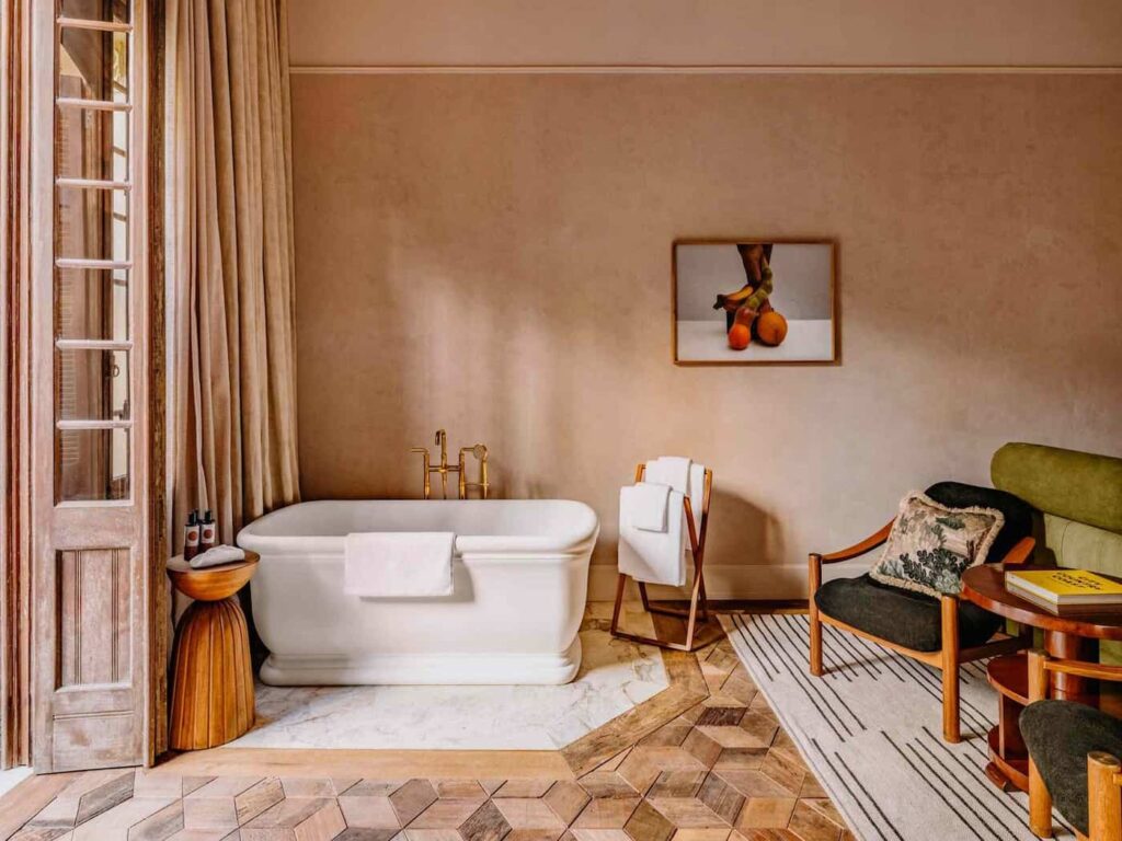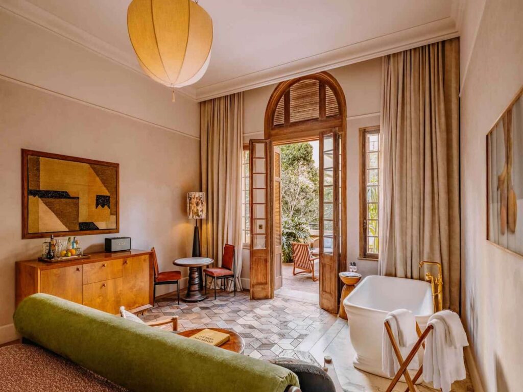 Guidato dalla direttrice della Soho House, Danielle Vourlas, il design dell’edificio abbraccia le fondamenta della sua struttura originale, comprese le pareti a vista e il legno di recupero recuperato dall’ospedale che un tempo sorgeva nello spazio. Un mix di pregiati materiali naturali brasiliani come l’imbuia (noce brasiliana), il cumaru (teak brasiliano) e il jequitibá (legno duro tropicale, simile al mogano) è utilizzato in tutti gli spazi, insieme a marmo e pietra di provenienza locale. […]