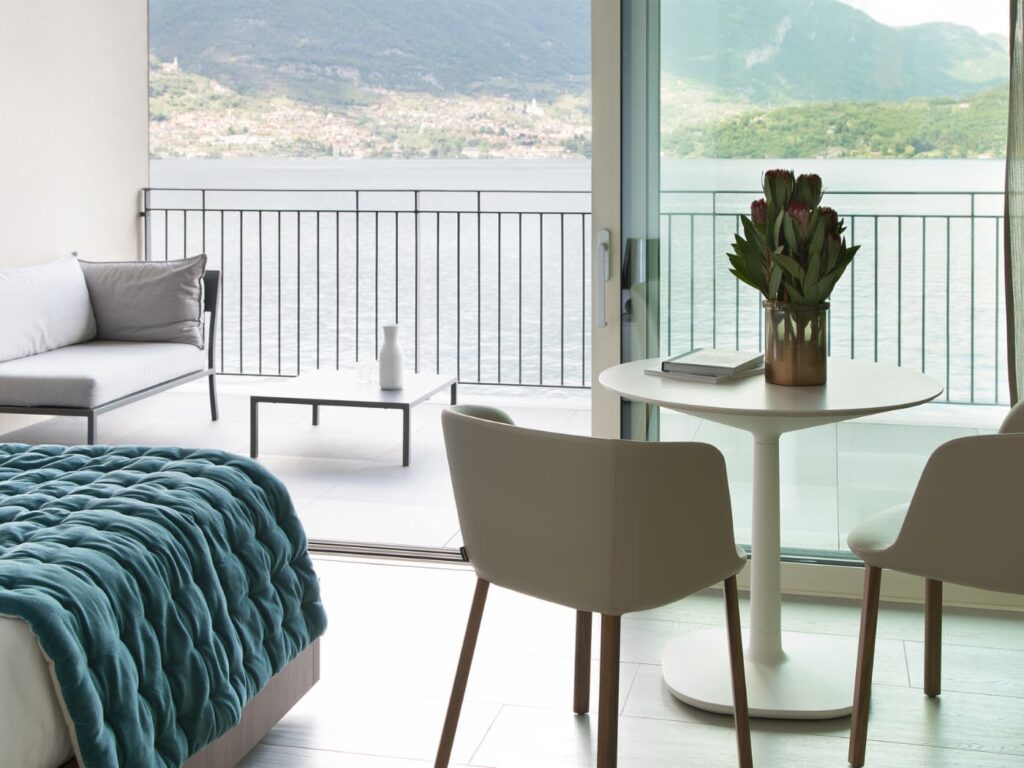 Affiliato al circuito Design Hotels, questo albergo dal gusto contemporaneo armoniosamente integrato nel paesaggio, si affaccia sulle rive di Lezzeno. Gli interni, dal design minimalista e lineare, si distinguono per arredi contemporanei, molti su misura, e per l’uso di materiali e finiture di pregio. La struttura conta 13 camere e 2 suite, tutte con balconi privati vista lago. Completano l’offerta 20 residenze dedicate a soggiorni più lunghi. Cenetta di coppia presso il Ristorante Filo, con possibilità di esplorare percorsi degustazione (sempre con un occhio agli ingredienti di stagione).