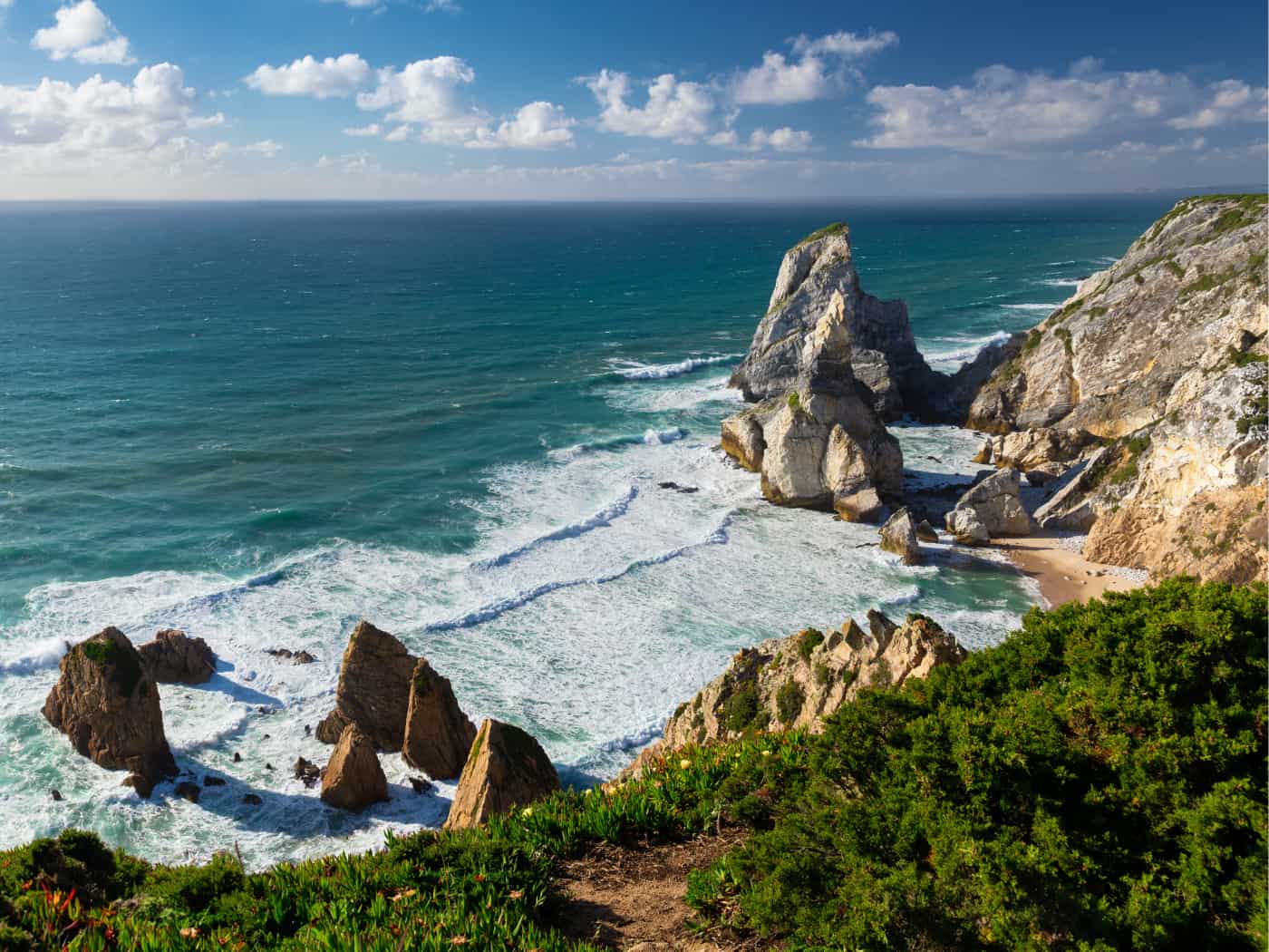 Nel frattempo, durante il tragitto, merita una sosta fotografica Cabo da Roca, non un promontorio qualsiasi: si tratta infatti del punto più occidentale dell’Europa continentale che, nelle giornate di foschia, assume un aspetto quasi misterioso. Raggiunta la cima – a 140 metri sul livello del mare – si apre un panorama in cui la natura sfodera tutta la sua grandiosità: colossali falesie a strapiombo su un Atlantico che sembra perdersi all’infinito. Anche l’uomo qui ha fatto la sua parte, perché a rendere ancora più suggestiva l’atmosfera c’è un faro (il secondo più antico del Portogallo) risalente al 1762 e attivo ancora oggi.