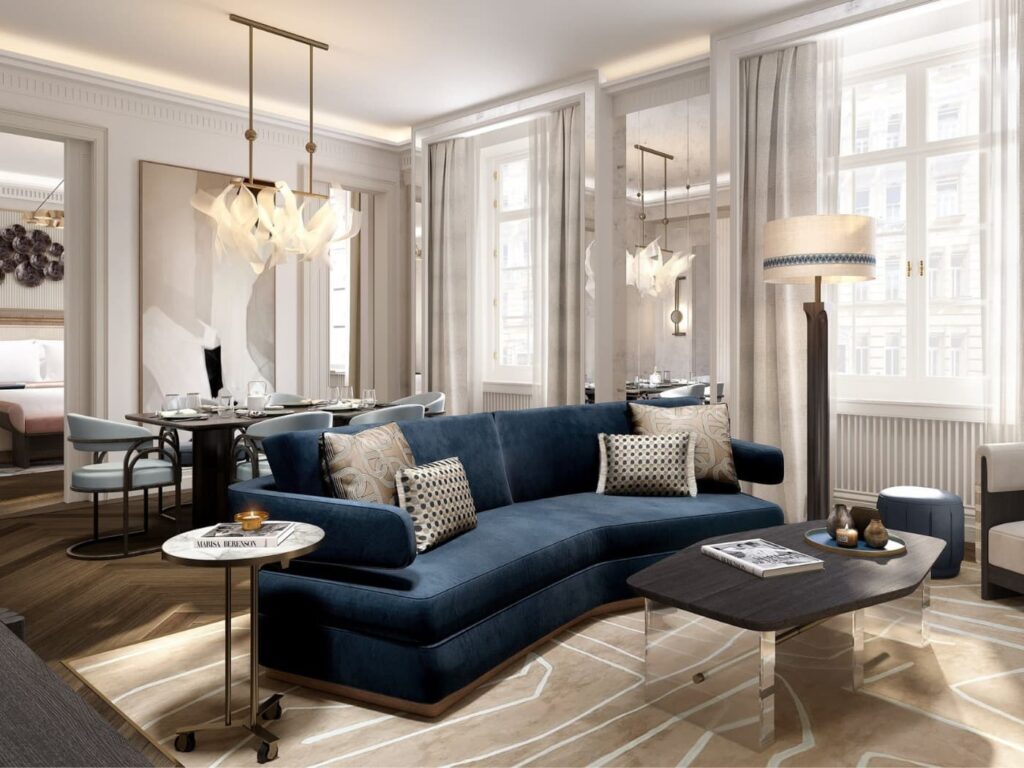 Riconosciuta come una delle a città più vivibile al mondo, grazie a una rete di trasporto pubblico efficiente, a un’offerta culturale ricca e variegata e ad ampi spazi verdi, Vienna si conferma una città dal fascino inconfondibile e in continuo fermento. Anche sul fronte hôtellerie. Uno dei centri nevralgici, l’Innere Stadt, il prossimo 28 ottobre accoglierà il Mandarin Oriental, Vienna ovvero il primo hotel del prestigioso gruppo asiatico in Austria. Il colpo d’occhio è immediato, già dall’esterno: al civico 7 di Riemergasse, basta alzare lo sguardo per restare incantati davanti a un elegante palazzo in stile Art Déco. Progettato dall’architetto Alfred Keller, l’edificio risalente al 1908 — un tempo sede del tribunale — unisce elementi architettonici originali a un raffinato design contemporaneo.