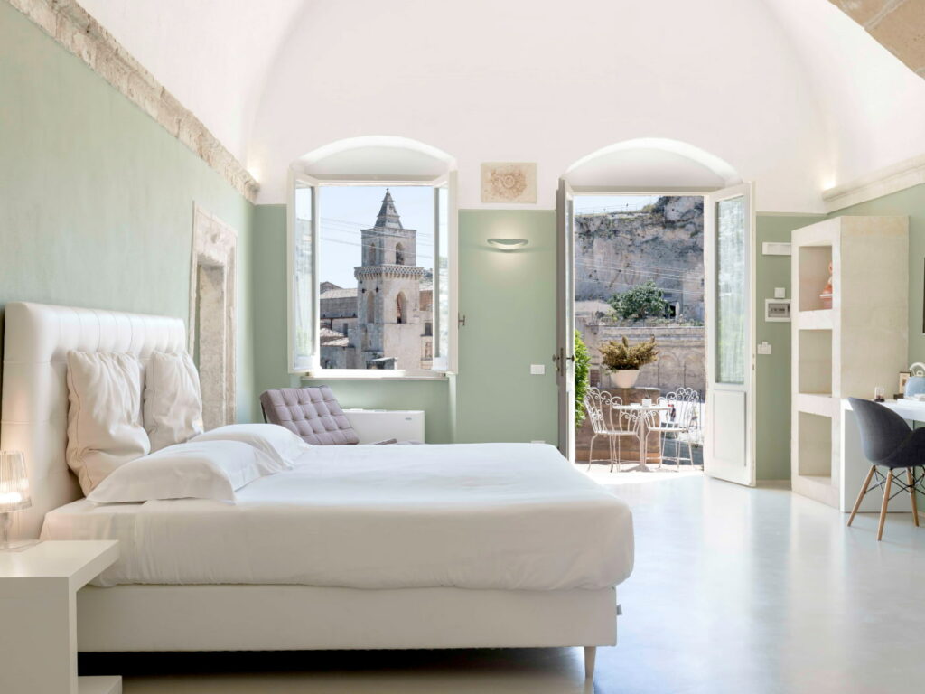 È immersa nei Sassi, nel punto più alto della città, anche l’antica dimora dei Conti Gattini, una delle più importanti famiglie nobili materane, restaurata con cura, oggi trasformato in Palazzo Gattini, cinque stelle della collezione VRetreats (brand di hôtellerie di Voihotels, la catena alberghiera di Alpitour World), con 20 camere, spa, ristorante e spazi eventi. Gli ambienti evocano le memorie della famiglia Gattini, le luci morbide creano atmosfere intime, i materiali usati, come il mazzaro, pietra locale per i rivestimenti, avvicinano chi soggiorna alla storia e all’arte degli antichi quartieri della città.