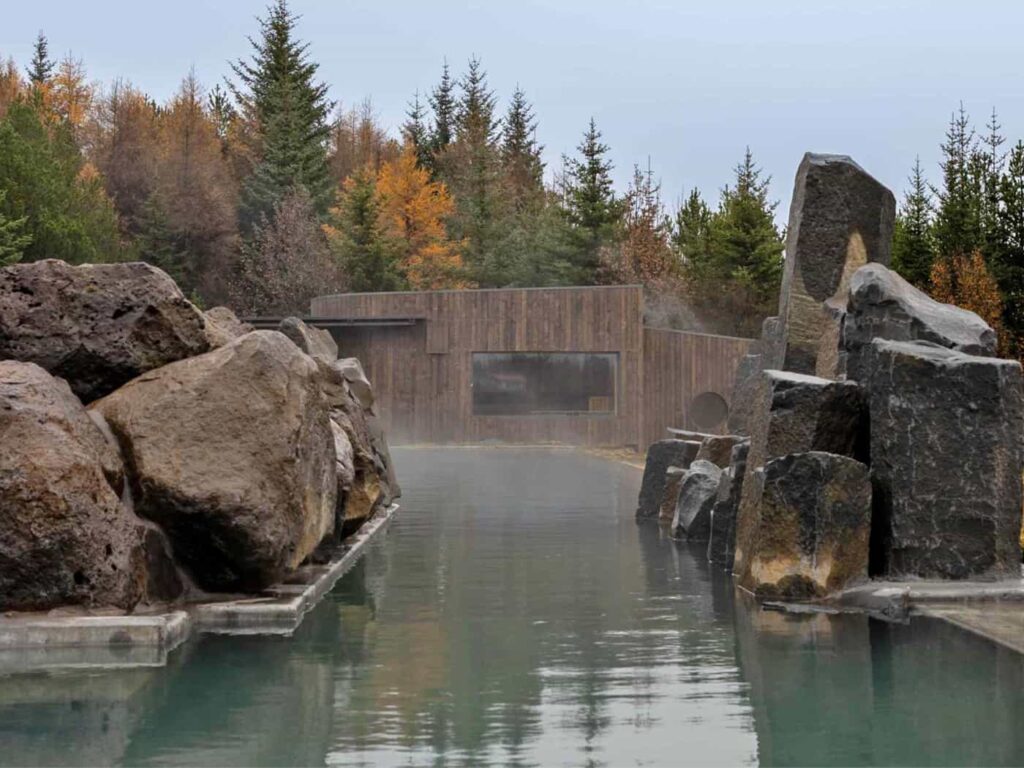 Non sono il solo. In un paese in preda all’acqua calda, dove il calore geotermico alimenta innumerevoli piscine e lagune, ogni nuova apertura è accolta con avida curiosità. Mentre la Laguna Blu, con le sue acque lattiginose e ricche di silice, rimane la più famosa, attirando fino a un milione di visitatori all’anno, lagune più piccole e meno turistiche sono apparse in tutto il paese, dalla Laguna del Cielo sul porto di Kársnes vicino a Reykjavik alla Laguna della Foresta nell’estremo nord dell’Islanda. Laugarás è altrettanto piccola nelle sue dimensioni. È incentrata su un suggestivo edificio ricoperto di erba, un omaggio all’architettura tradizionale islandese, con archi simili ad acquedotti e un tetto angolare in legno all’interno, un po’ in stile Hobbit, un po’ rustico da fantascienza.