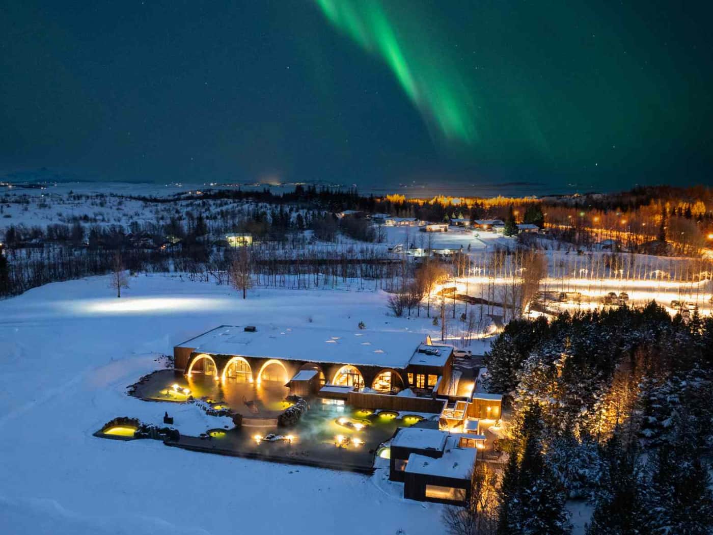 Dopo il mio banchetto, sono tentato di tornare nelle acque della laguna per galleggiare ancora un po’, ma devo fare il viaggio di ritorno a Reykjavik. Il cielo si è oscurato, diventando di un blu profondo e terso, anche se quel tramonto lento, lentissimo, brucia ancora di arancione all’orizzonte, e le lampade ora brillano intorno alla laguna, come se fossero pronte per una cena a lume di candela. La notte sembra destinata a un’apparizione epica con l’aurora boreale – alcuni ospiti l’hanno già vista più volte, fluttuando sulla schiena mentre l’aurora turbina e si riversa sopra di loro – ma è uno spettacolo per cui dovrò tornare un’altra volta.