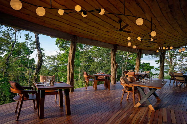 I 59 ettari di foresta pluviale circostante – condivisi tra l’Origins Astral e la sua struttura gemella Origins Floral, inaugurata nel 2018 a meno di un miglio di distanza – sono evidenti nel design. L’architetto locale Mario Aviles e lo studio di architettura statunitense Gensler hanno collaborato per garantire che l’Origins Astral rendesse omaggio alla terra, alla sua storia e alla sua gente, la comunità indigena Maleku. Oltre l’80% degli arredi è realizzato artigianalmente e di provenienza locale, come gli enormi tronchi che sostengono il tetto del ristorante El Cosmo. (I mobili sono realizzati con legno caduto naturalmente nella foresta circostante.)