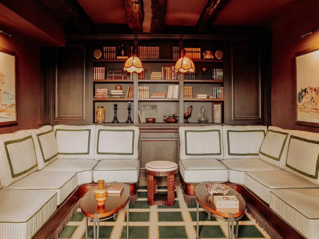 Nelle vicinanze, un bar ben fornito con sgabelli in legno su misura e lampade in vetro soffiato a mano creava l’atmosfera giusta per i cocktail. Il ristorante La Table des Pins, che prende il nome dai pini che ricoprono la tenuta, apparecchia tavoli bianchi e candidi per cena e colazione. La vivace moquette geometrica contrasta con le sedute in velluto verde chiaro e giallo e le pareti in ciliegio. L’ampia terrazza, ideale per un bicchiere di rosé dopo una partita di pétanque nei mesi più caldi, si estende nel paesaggio bucolico. Saziata da un pasto a base di scampi e capesante preparati in modo impeccabile, mi sono avventurata nell’intima biblioteca per ammirare i tomi risalenti all’apertura del Le Mas Candille del 2001. Oltre la biblioteca, una scacchiera da backgammon ha catturato la mia attenzione, ma ho optato per diverse partite animate di biliardino, con un amico di Cannes.
