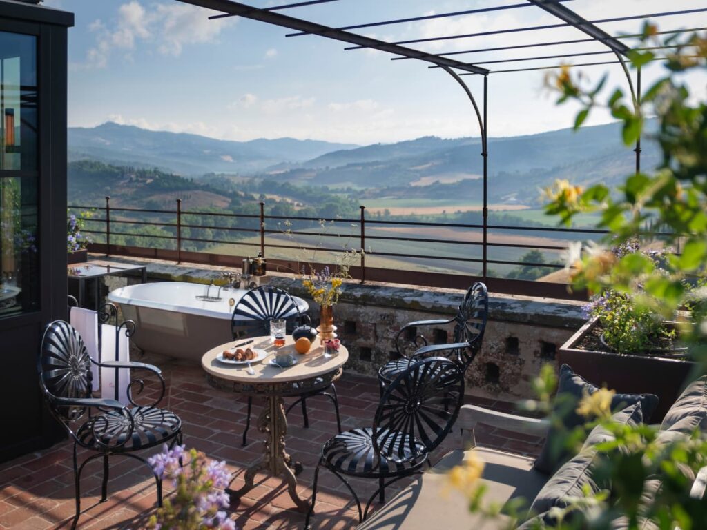 Un castello millenario in Umbria, oggi trasformato in un boutique hotel d’eccellenza, dove le sale da bagno delle suite sono una vera dichiarazione di stile. Spazi intimi e contemplativi, concepiti come autentiche stanze del benessere, spesso affacciate sul paesaggio, che uniscono materiali naturali e dettagli artigianali. Le vasche da bagno, protagoniste assolute, sono spesso freestanding e talvolta collocate nella zona notte: nella Tower Suite, ce n’è una addirittura all’esterno, affacciata sulle colline. Oltre al piacere di un bagno rilassante, è possibile provare veri e propri trattamenti in suite, come il Rituale del Bagno, personalizzato per ogni ospite: fiori e piante spontanee raccolti a Reschio vengono infusi nell’acqua mentre argille, sali, erbe ed essenze vengono preparati al momento.