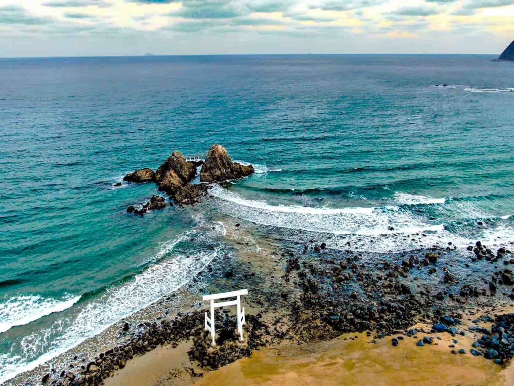 In città come Tokyo o Osaka, tra cartelloni pubblicitari e grattacieli accecanti, può essere facile dimenticare che il Giappone è una nazione insulare, ma nel Kyushu il mare non era mai lontano. Per il nostro ultimo pomeriggio in bicicletta, Liew e io abbiamo caricato le nostre bici su un traghetto per il viaggio di mezz’ora verso la piccola isola di Shikanoshima.
