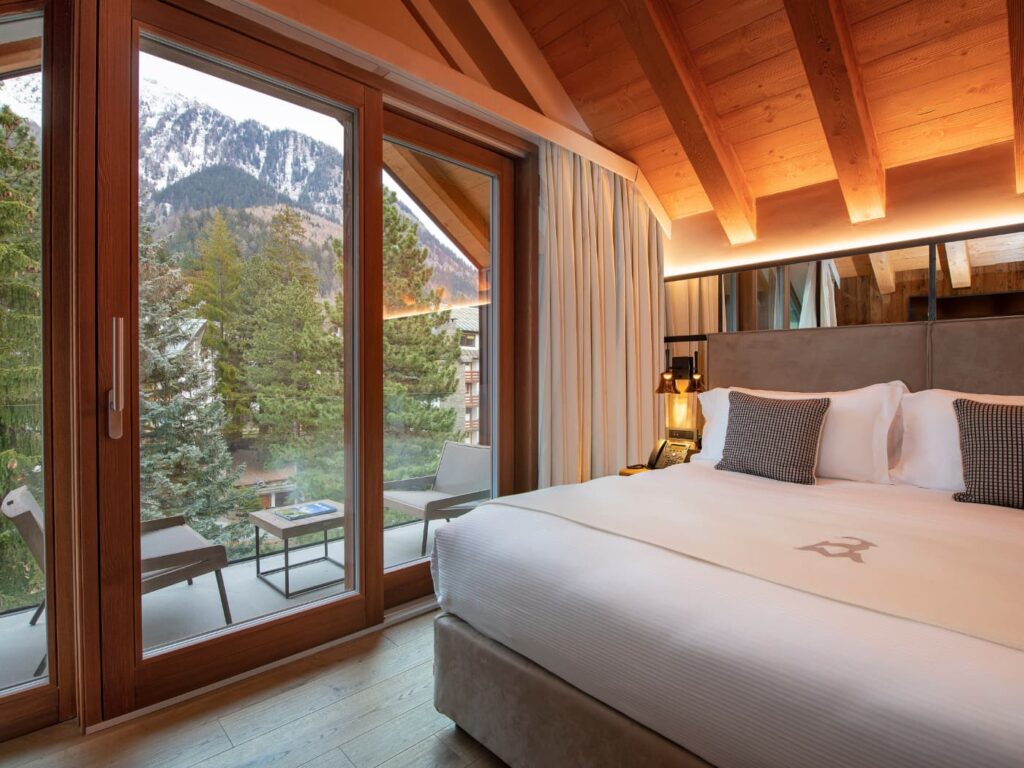 A Courmayeur, vicinissimo al centro e con una vista privilegiata sul maestoso Monte Bianco, questo hotel di charme dista solo pochi passi dagli impianti di risalita per le piste di Plan Checrouit (parte del comprensorio sciistico di Courmayeur, con oltre 100 km di discese panoramiche). Interior design in stile alpino moderno per camere e suite, con la stessa cifra stilistica nelle aree comuni. Total white e minimalista, la spa completa di saune, bagno turco e cabine trattamento vi farà rilassare rientro dalle piste. I cani, qui, sono i benvenuti.