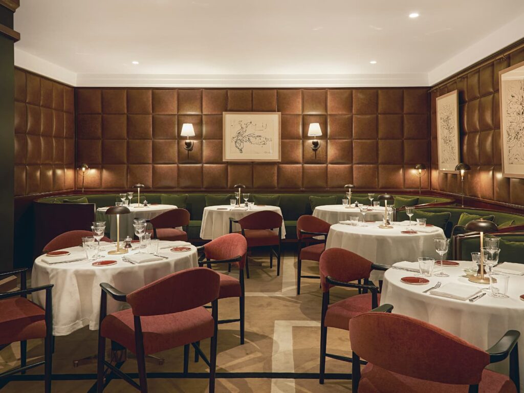 Supervisionata dallo chef Fulvio Pierangelini, la proposta gastronomica unisce tradizione italiana e vocazione milanese. Il Cafe Floretta, accessibile anche da via della Spiga, accoglie gli ospiti con un interior botanico dove la luce della cupola gioca tra tavoli e piante, creando un’atmosfera ideale per colazioni à la carte, ma anche a buffet. Da non perdere la pasticceria artigianale, in particolare le crostate che cambiano ogni giorno. Tra i signature in menu, ci sono le uova alla contadina, con cipollato, peperoncino, pomodoro e basilico e il piatto di ricotta di mandorle, arance di Ribere e semi di chia. Affacciato su via Senato, il The Carlton Bar, coniuga ispirazioni internazionali e autenticità milanese: il bancone richiama le sculture astratte di Fausto Melotti; alzando lo sguardo, il soffitto è punteggiato da plafoniere in vetro di Murano, tra i pochi elementi sopravvissuti alla precedente gestione alberghiera.