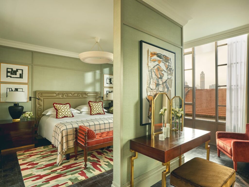 Anche nelle 71 suite e camere continua il dialogo tra design e arte. Concepite come rifugi intimi, sono state progettate in modo sartoriale, ispirandosi ai grandi maestri del XX secolo, in particolare all’estetica senza tempo dell’architetto Gio Ponti. I toni profondi di verde, nero e bronzo si intrecciano con dettagli in pelle e pezzi d’antiquariato, creando ambienti caldi ed eleganti. Le cinque Forte Suite rappresentano l’apice dell’esperienza: impreziosite da terrazze panoramiche, hanno spazi generosi e arredamenti che combinano tessuti pregiati, dettagli neoclassici e accenti cromatici audaci che danno vita a un comfort contemporaneo.