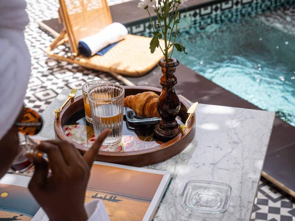 I due inaugurarono The Palms, un boutique hotel nell’esclusivo quartiere di Les Almadies, nato attorno al progetto gastronomico di Merlo, Noliane Restaurant, che nei fatti è ancora l’unico indirizzo di fine dining (italiano) della città. Quel livello di cura e quella intenzione mi sono rimasti dentro e volevo portarli qui», continua Souadou. La Villa, costruita negli anni Settanta, ospita cinque camere, di cui tre suite – ognuna con una piccola piscina privata – e due standard, e non è stata ridisegnata da un architetto o da un interior designer.