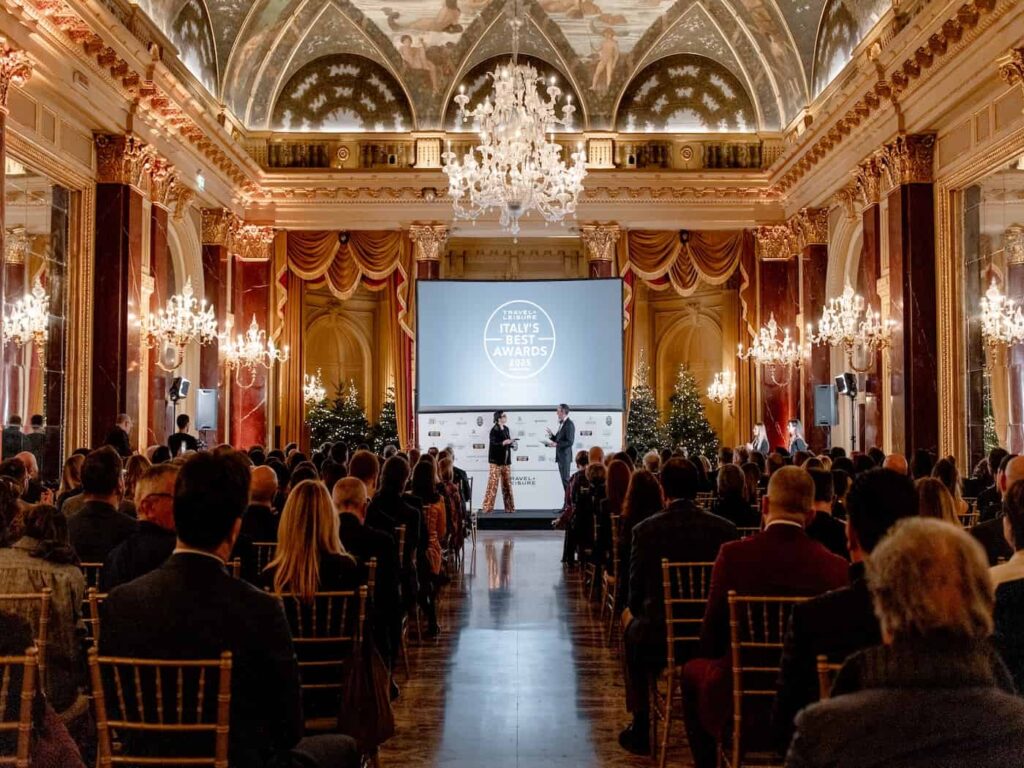 Alla cerimonia di premiazione al The St. Regis Rome, che si è tenuta nel sontuoso Salone Ritz — la prima sala da ballo pubblica di Roma progettata dall’architetto romano Giulio Podesti nel 1890 e inaugurata da Cesar Ritz nel 1894 —, oltre ai grandi protagonisti dei Travel + Leisure Italy’s Best Awards hanno preso parte in platea esperti del settore, giornalisti e istituzioni.