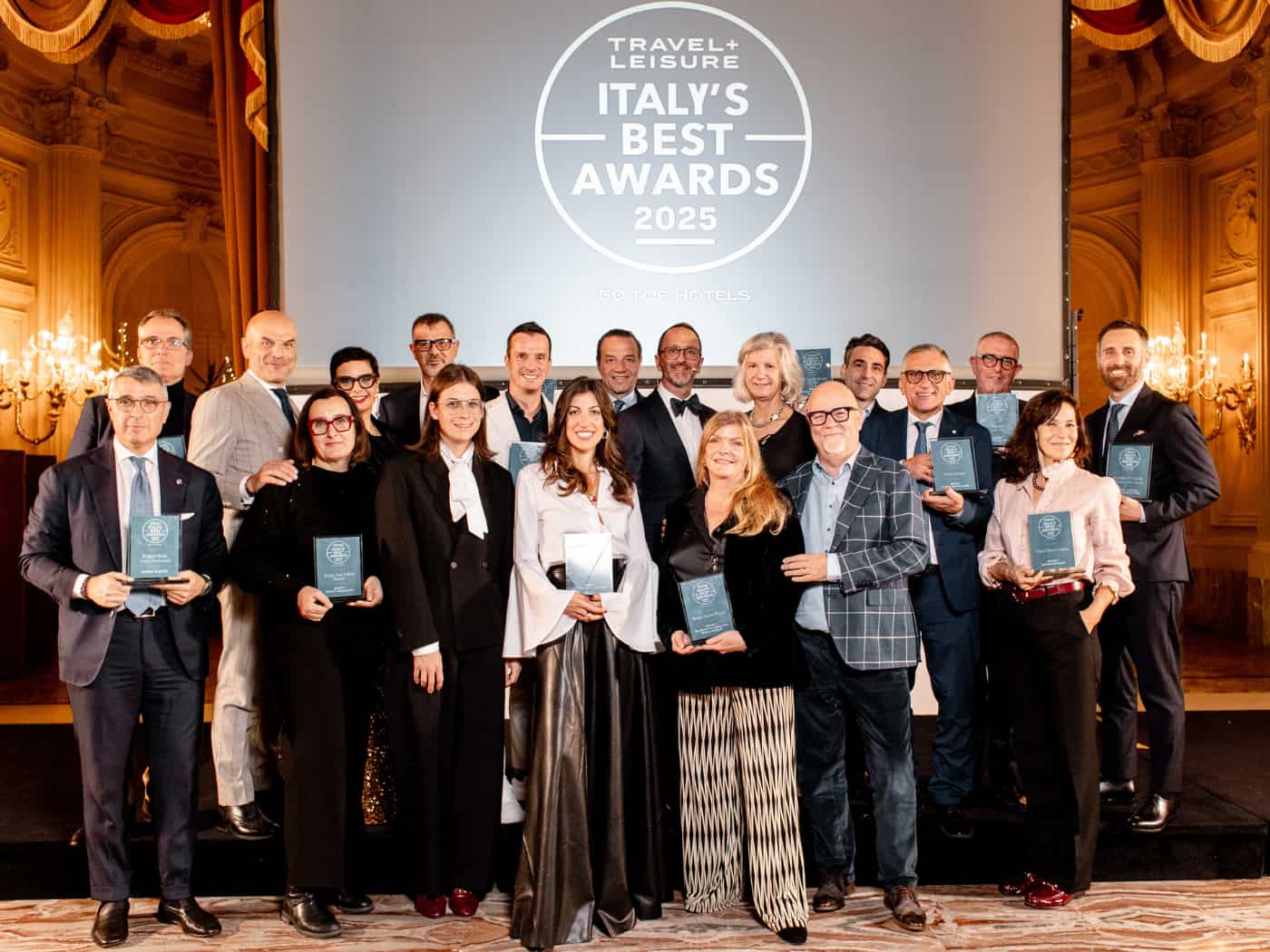 Alla cerimonia di premiazione al The St. Regis Rome, che si è tenuta nel sontuoso Salone Ritz — la prima sala da ballo pubblica di Roma progettata dall’architetto romano Giulio Podesti nel 1890 e inaugurata da Cesar Ritz nel 1894 —, oltre ai grandi protagonisti dei Travel + Leisure Italy’s Best Awards hanno preso parte in platea esperti del settore, giornalisti e istituzioni.