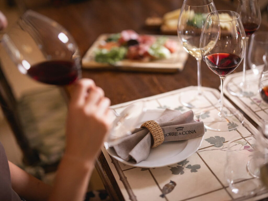 Passeggiando verso l’ala ovest si raggiungono le 30 camere Classic, Superior e Lavish, arredate con eleganza toscana e mobili d’epoca. Ogni dettaglio è stato curato dalla Contessa Rossi di Montelera, con bagni raffinati e vasche vintage dove rilassarsi. Per immergersi nell’essenza autentica della Toscana, non mancano le esperienze: degustazioni, trattamenti nella sala massaggi, passeggiate a cavallo, trekking con guide, picnic tra gli ulivi e corsi di cucina. A deliziare il palato ci pensa lo chef Enrico Romualdi, all’Osteria di Torre a Cona, con un menu à la carte ispirato alla tradizione: imperdibili la bistecca alla fiorentina, il paté di fegatini e i maccheroncini al ragù bianco d’anatra.