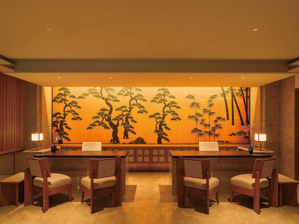 L’Imperial Hotel di Kyoto dispone di due ristoranti e un bar: Yasaka, aperto tutto il giorno, Ren, specializzato in cucina francese, e l’Old Imperial Bar, che offre cocktail raffinati serviti con meticolosa cura. “Non abbiamo bisogno di un ristorante giapponese perché la gente del posto ha già a disposizione la cucina e la cultura giapponese”, afferma Sakata.