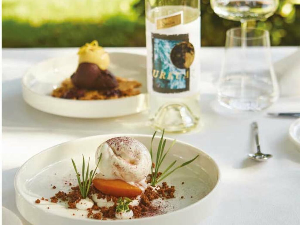 Il mattino seguente, ho guidato due ore a sud fino a Hierapolis, meta di benessere fin dal II secolo a.C. Le sorgenti che sgorgano sul fianco delle terrazze di travertino attraggono ancora i turchi, anche se le terme dove un tempo si rilassavano i conquistatori romani sono oggi un sito archeologico. Un’ora a nord dell’antica città termale, ho notato una grande anfora romana da Küp Şarapçılık, un’azienda vinicola che prende il nome dai recipienti usati un tempo per conservare e trasportare il vino. Il proprietario Hasan Altıntaş, terza generazione in azienda, ha intenzione di costruirvi un museo dedicato. È anche un uomo impregnato di spirito comunitario. Una delle sue etichette, Beş’i Bir Yerde, o “Cinque in uno”, sostiene l’istruzione femminile e progetti contro la violenza domestica. Il blend di tre uve autoctone – Sultaniye, Narince ed Emir – e Chardonnay e Sauvignon Blanc ha note agrumate e mentolate. Durante la mia breve permanenza nella città di Denizli, ho cenato al ristorante Garson Şükrü. L’hummus con pastrami fritto, le verdure fresche da intingere nelle salsine e la lingua di vitello con salsa piccante di limone e capperi si sono abbinati perfettamente a un Sauvignon Blanc locale di Thia.